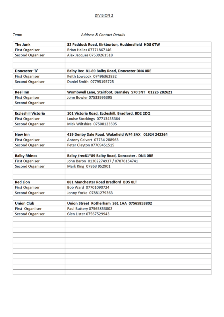 Division Two Fixtures & Contact Information